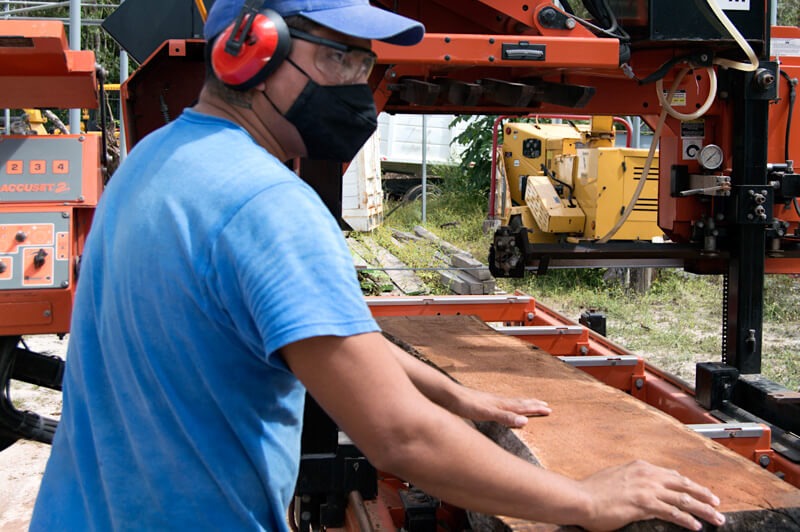 Único en la región, nuestro aserradero semi industrial y portátil nos permite cortar troncos de madera dura y blanda de hasta 80 cm de diámetro.